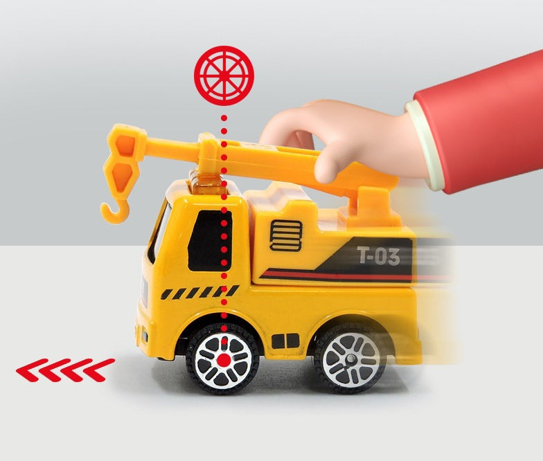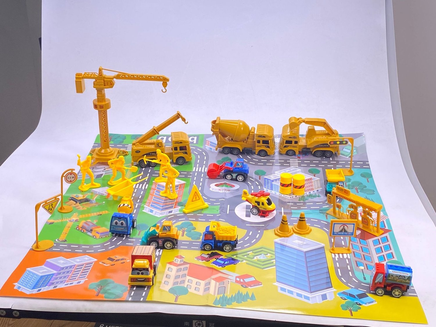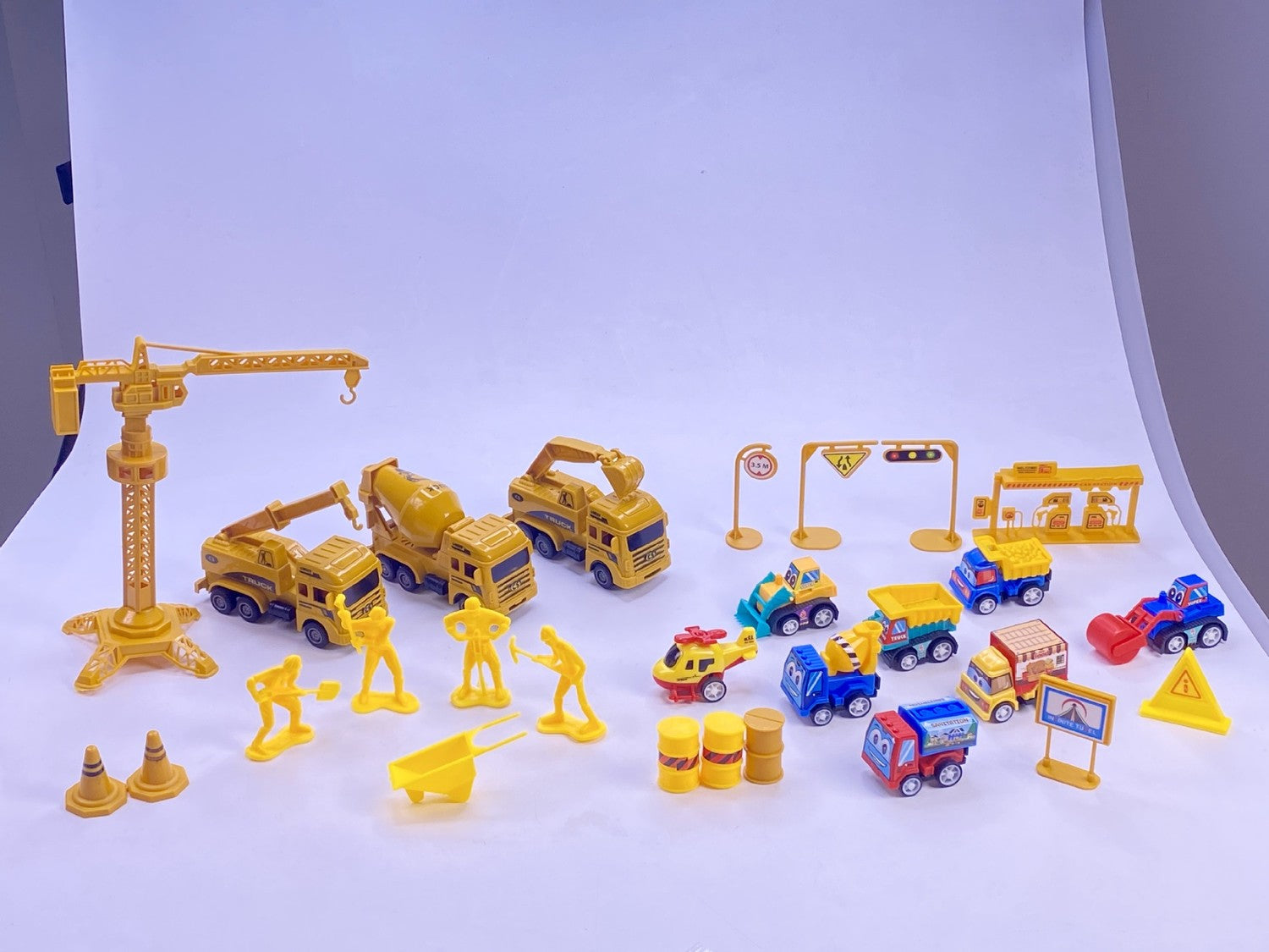 6 byggfordon (cementbil, lyftkran, grävmaskin, lastbil m.fl.)