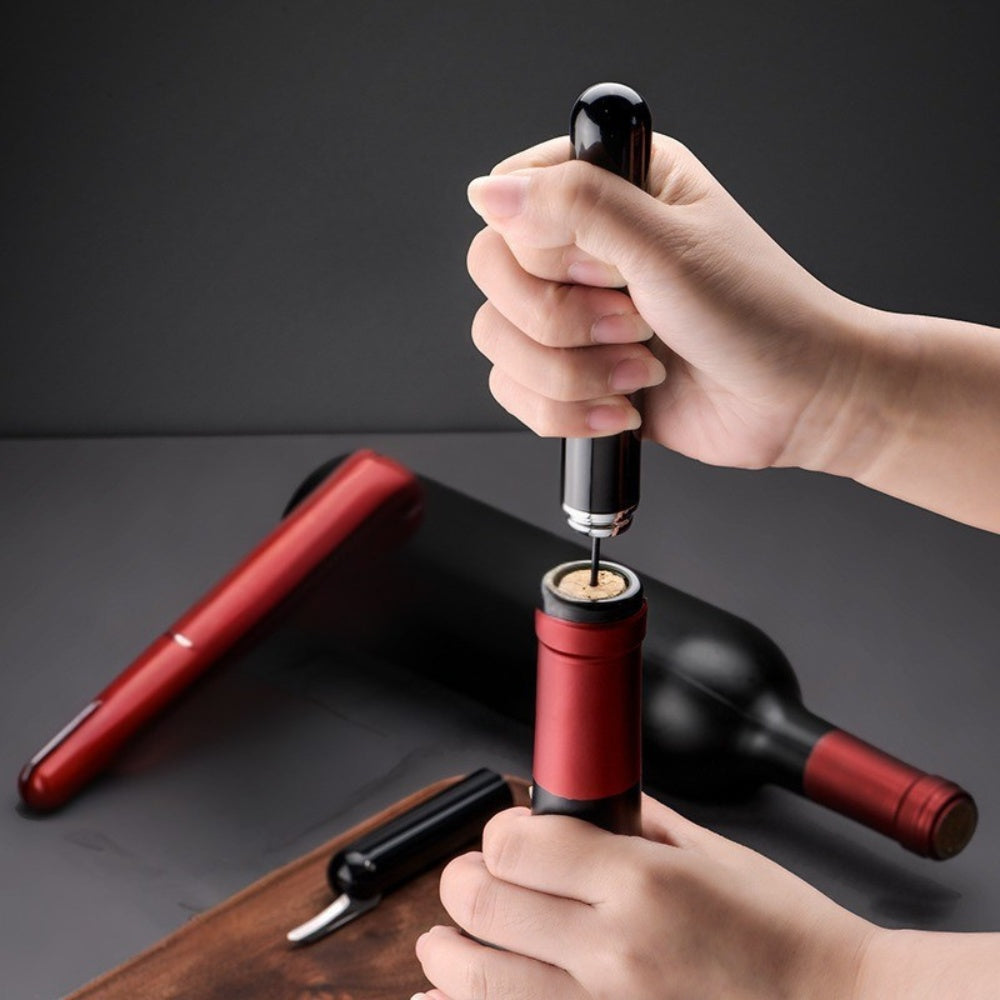 Lufttrycksdriven vinöppnare med vakuumkork och hällpip