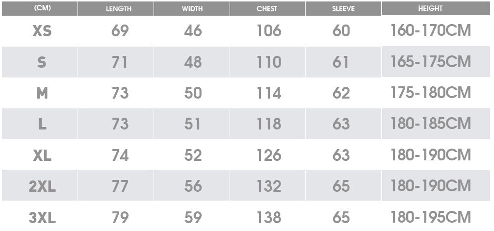 Storlekar: XS, S, M, L, XL, 2XL, 3XL