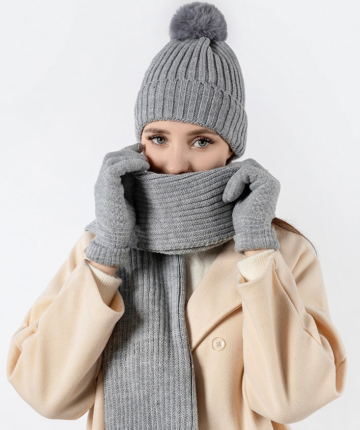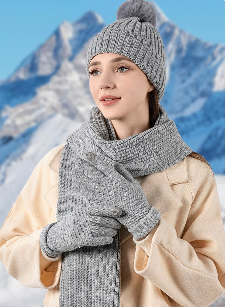 Varmt vinterset 3-delar - Mössa, halsduk & touchvantar